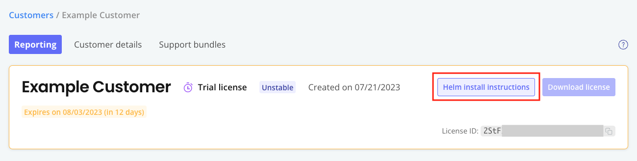 The customer must have the Existing Cluster (Helm CLI) install type enabled. For more information about enabling install types for customers in the Vendor Portal, see Manage Install Types for a License.